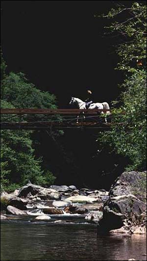 Remington Steele*++, on the Swinging Bridge, Tevis, aged 7,