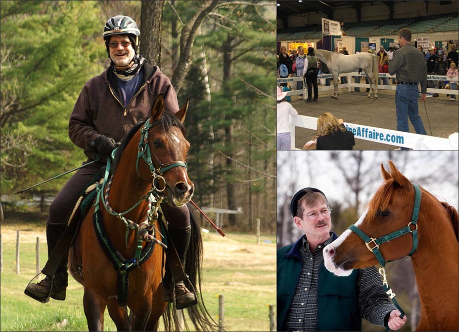 (Left) Jerel Harris, Breeding Manager, riding II DAMB MUCH. (upper right) Jerel speaking at Celebrity Horse Showcase at Equine Affaire in MA. (lower right) Jerel with JUST II COOL